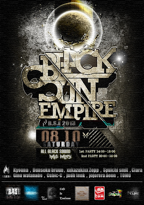 ALL BLACK SOUND RAVE PARTY*BLACK SUN EMPIRE*2013.8.10(SAT) 13:00/JST OPEN // STRAT 14:00 //DJs//◆1st PARTY 14:00-15:00 TOMO / 15:00-16:00 Kyouna / 16:00-17:00 KAZUKI / 17:00-18:00 BUN